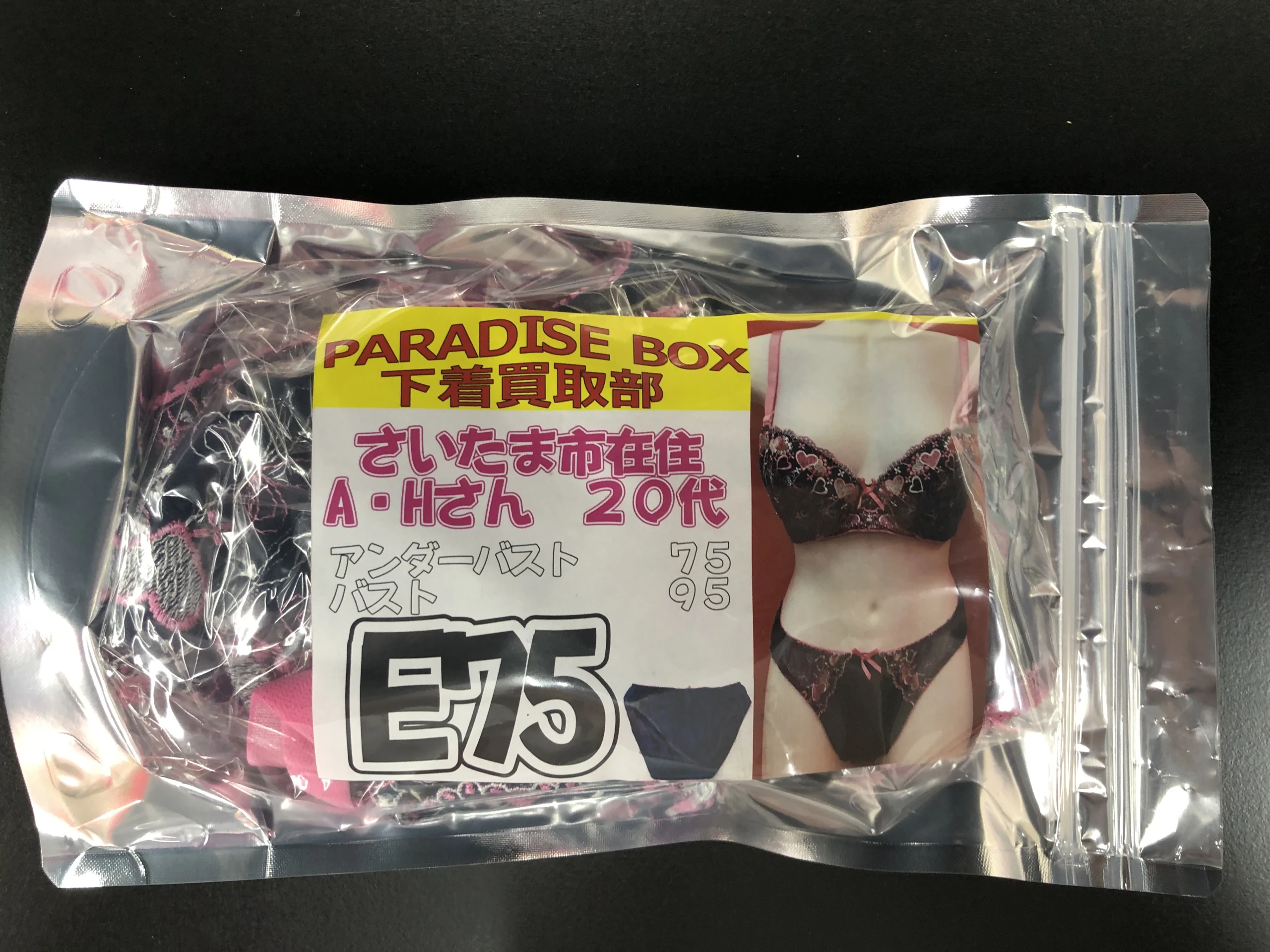 さいたま市在住 A・Hさん 20代 Eカップ ロリ 本物素人から買取した 「使用済みブラジャー&パンティ」です。